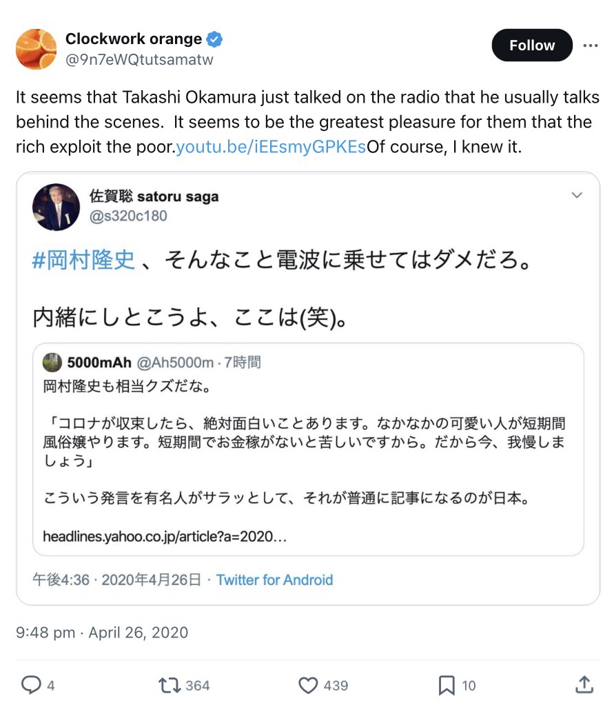 It’s embarrassing that people from overseas know it, but it’s Japanese culture to make women prostitute.