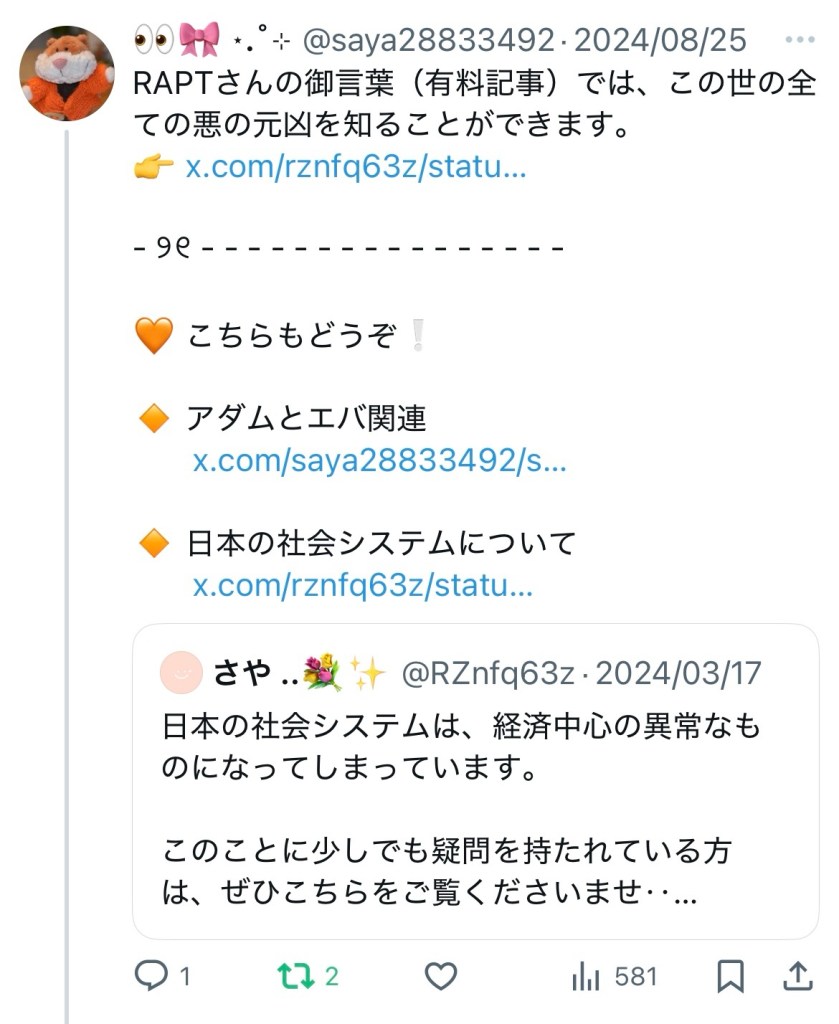 RAPT有料記事642(2022年4月9日)男が神様のような愛で愛し、女が聖霊様のような愛で愛してこそ、地上天国だ。 より
