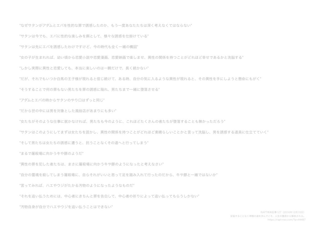 RAPT有料記事127(2016年12月10日)妥協することなく神様の道を歩んでこそ、人生の重荷から解放される。